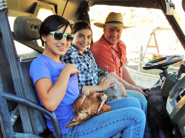 family participated in the hands-on branding, tissue sampling, and the vaccination of about 70 cows and calves, even helping to band the young bulls at a ranch in Ruby. They also visited a buffalo ranch, paid a visit to the newly born rabbits, goats and fouls at a breeding ranch, and made a visit to Nevada City and Virginia City where they panned for gold, rode the short line, and enjoyed some delicious pizza and ice cream.
